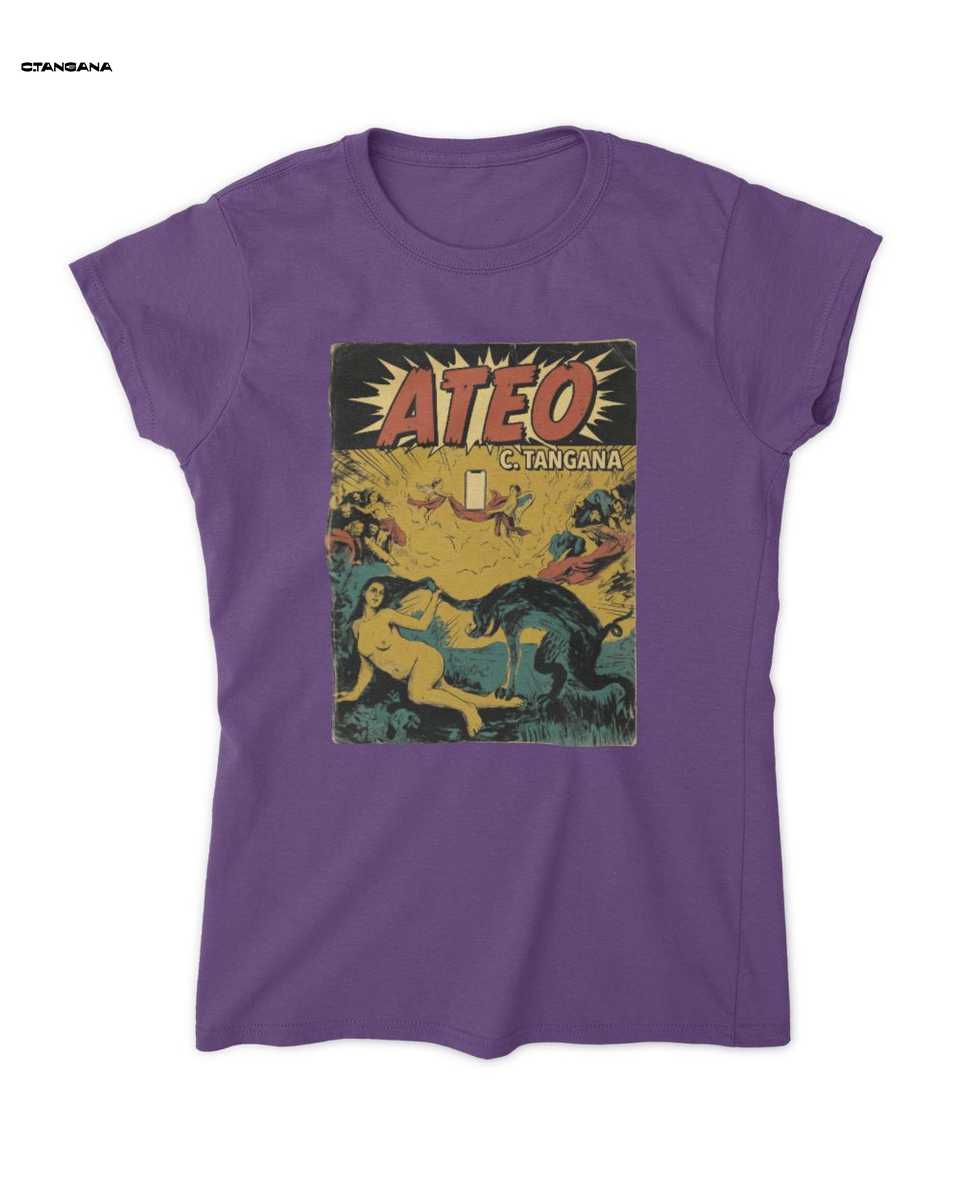 Para los amantes del arte surrealista prendas, esta camiseta ofrece una ventana a mundos oníricos y realidades alternativas. Las yuxtaposiciones de lo mundano y lo fantástico, lo sagrado y lo profano, son elementos recurrentes en el surrealismo, y el diseño ‘ATEO’ explora estas dualidades con maestría. Si te apasiona el arte fantástico moda, esta prenda te permitirá llevar contigo un fragmento de ese universo imaginativo. La **Cómic Pulp Camiseta** es un homenaje a un género que siempre se atrevió a explorar los límites de la imaginación, y ahora se reinventa para el guardarropa contemporáneo.