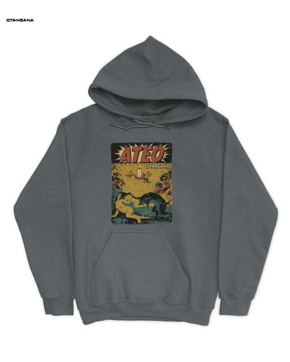 La **Camiseta ATEO diseño** es mucho más que una simple prenda; es una narrativa visual compleja y una declaración de estilo que desafía las convenciones. El corazón de esta camiseta reside en su intrincado diseño ‘ATEO’, una auténtica portada de cómic pulp vintage que captura la imaginación. Esta ilustración vibrante es una amalgama de referencias culturales y artísticas, concebida para aquellos que aprecian la profundidad en la moda y buscan prendas artísticas surrealistas.