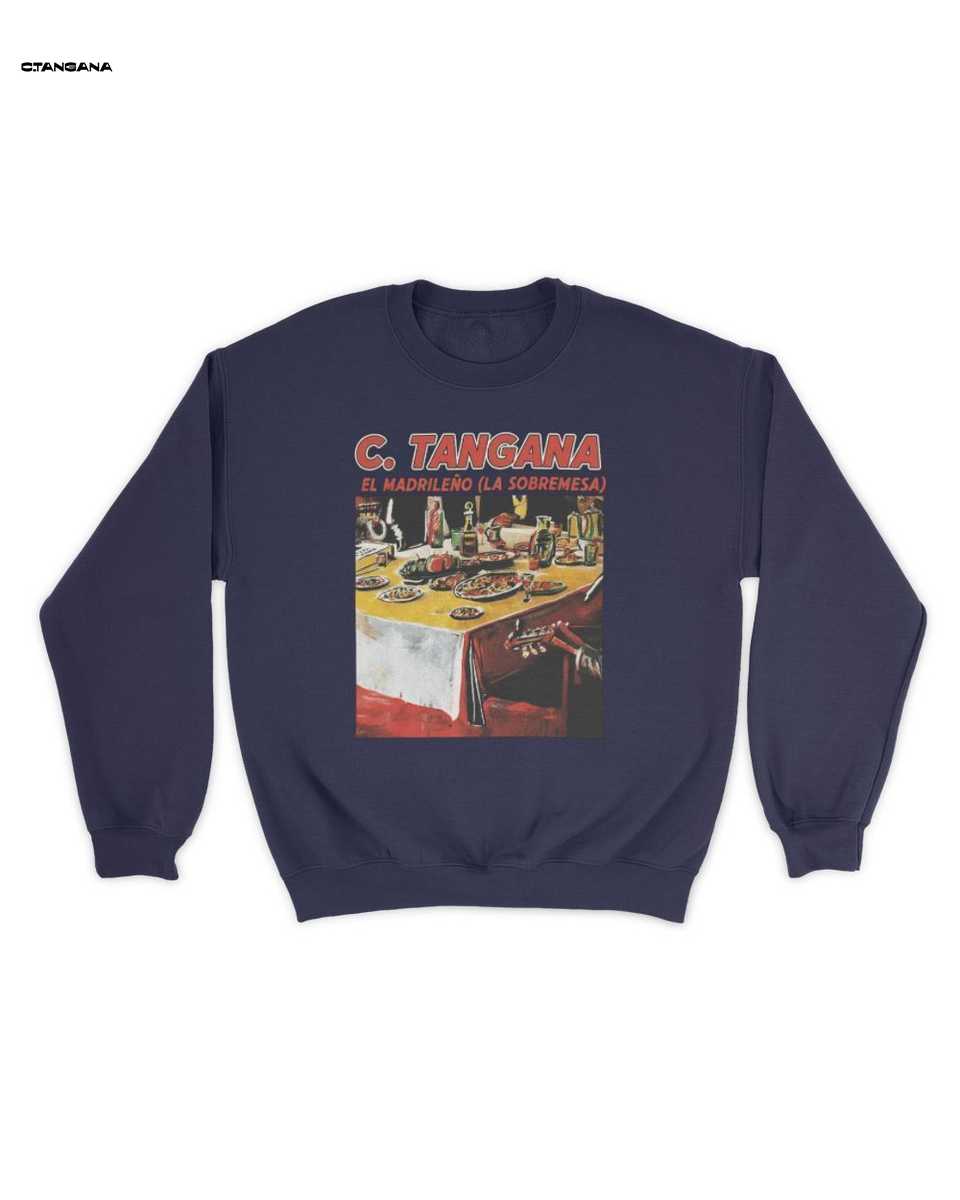 El diseño de esta camiseta es una obra de arte portátil que fusiona el universo de C. Tangana con la rica cultura española. Presenta una vibrante ilustración estilo cómic de una tradicional cena española post-comida, repleta de detalles festivos y relajados. Es una prenda imprescindible para los fans que buscan una conexión auténtica con ‘El Madrileño’ y el concepto de ‘La Sobremesa’, con un toque artístico y distintivo que celebra la `cultura española moda`.