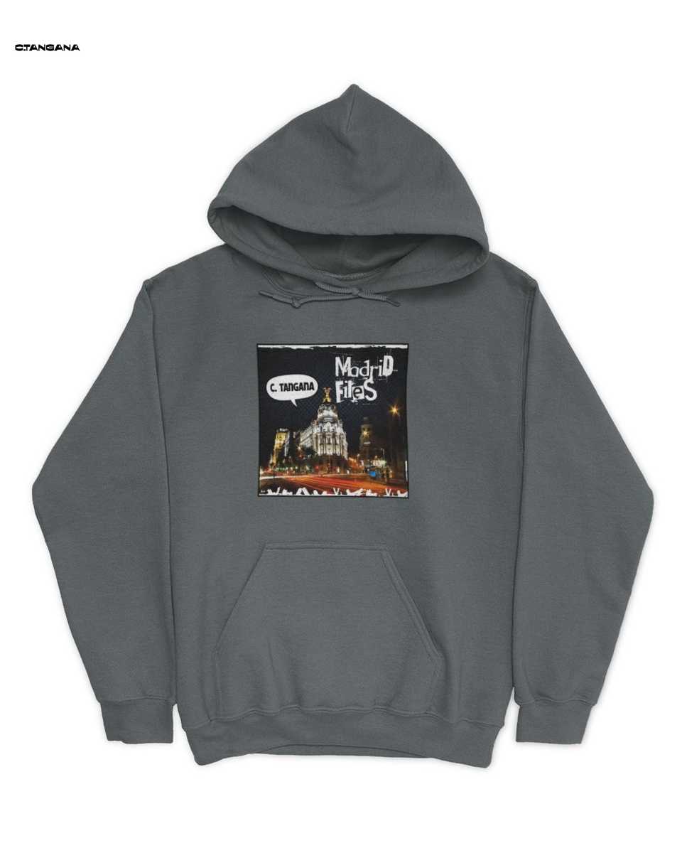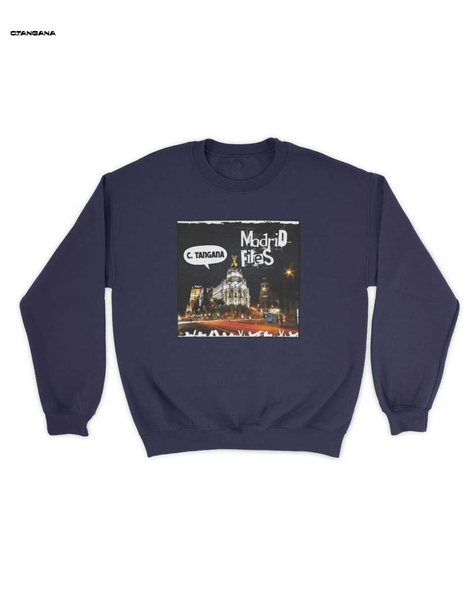 Pero el diseño no se detiene ahí. Como un guiño directo a la cultura contemporánea que define a Madrid, la camiseta destaca las frases ‘Madrid Files’ y un bocadillo de diálogo que rinde homenaje a ‘C. Tangana’. Este detalle sutil pero significativo conecta la prenda con la `música urbana merch` y la `moda rap español`, haciendo de esta `C. Tangana T-Shirt` un objeto de deseo para los fans y un símbolo de identidad para quienes se sienten parte de este movimiento cultural. La inclusión del nombre de C. Tangana, conocido por su profunda conexión con la ciudad y su capacidad para capturar la `esencia de la capital`, eleva esta camiseta a la categoría de `merchandising C. Tangana` imprescindible. Es una forma de llevar contigo un pedazo de la influencia que el artista ha tenido en la escena urbana, y una manera elegante de mostrar tu afinidad por la `ropa inspirada en C. Tangana`.
