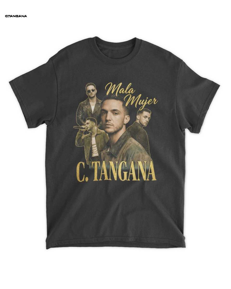La clave del diseño de esta camiseta reside en su fidelidad al `90s bootleg rap tee style`. Los múltiples retratos de C. Tangana, dispuestos de manera dinámica, recrean la estética de las portadas de álbumes o los flyers de conciertos de la época. La `golden script typography shirt` para “Mala Mujer” es una elección audaz que resalta el título de la canción y le confiere un aire de exclusividad. Junto al nombre “C. TANGANA” en formato de póster retro, estos elementos se combinan para ofrecer una `fan art C. Tangana t-shirt` que es tanto un tributo al artista como una pieza de moda que celebra una era definitoria de la cultura musical. Es un diseño que habla directamente a los amantes del `trap español apparel` y del `reggaeton fan gear` que aprecian la autenticidad y el estilo retro.