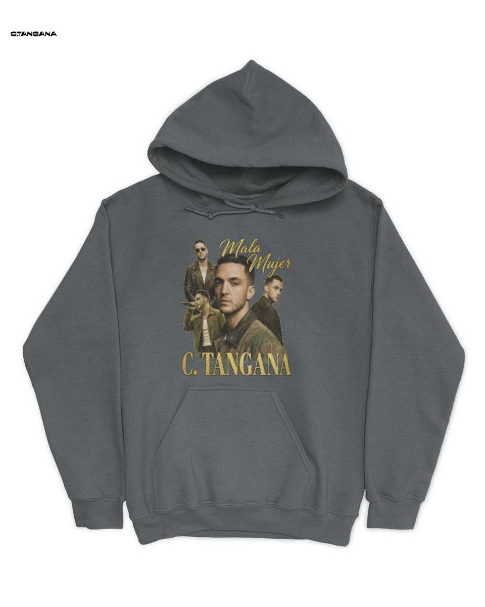 El título “Mala Mujer” aparece en una distintiva `golden script typography shirt`, que no solo evoca el glamour de esa década, sino que también añade un toque de sofisticación urbana al conjunto. Acompañando esto, el nombre “C. TANGANA” se presenta en un audaz formato estilo póster retro, rememorando los diseños gráficos que adornaban las habitaciones de los fans de la música en aquel entonces. Es una combinación que grita `hip hop vintage clothing` y `rap español merch`, ofreciendo una pieza de `C. Tangana merchandising` que se distingue de lo convencional. Cada elemento ha sido cuidadosamente seleccionado para crear una `vintage C. Tangana shirt` que no solo es moda, sino también una narrativa visual de la trayectoria de Pucho y la rica historia de la música urbana.