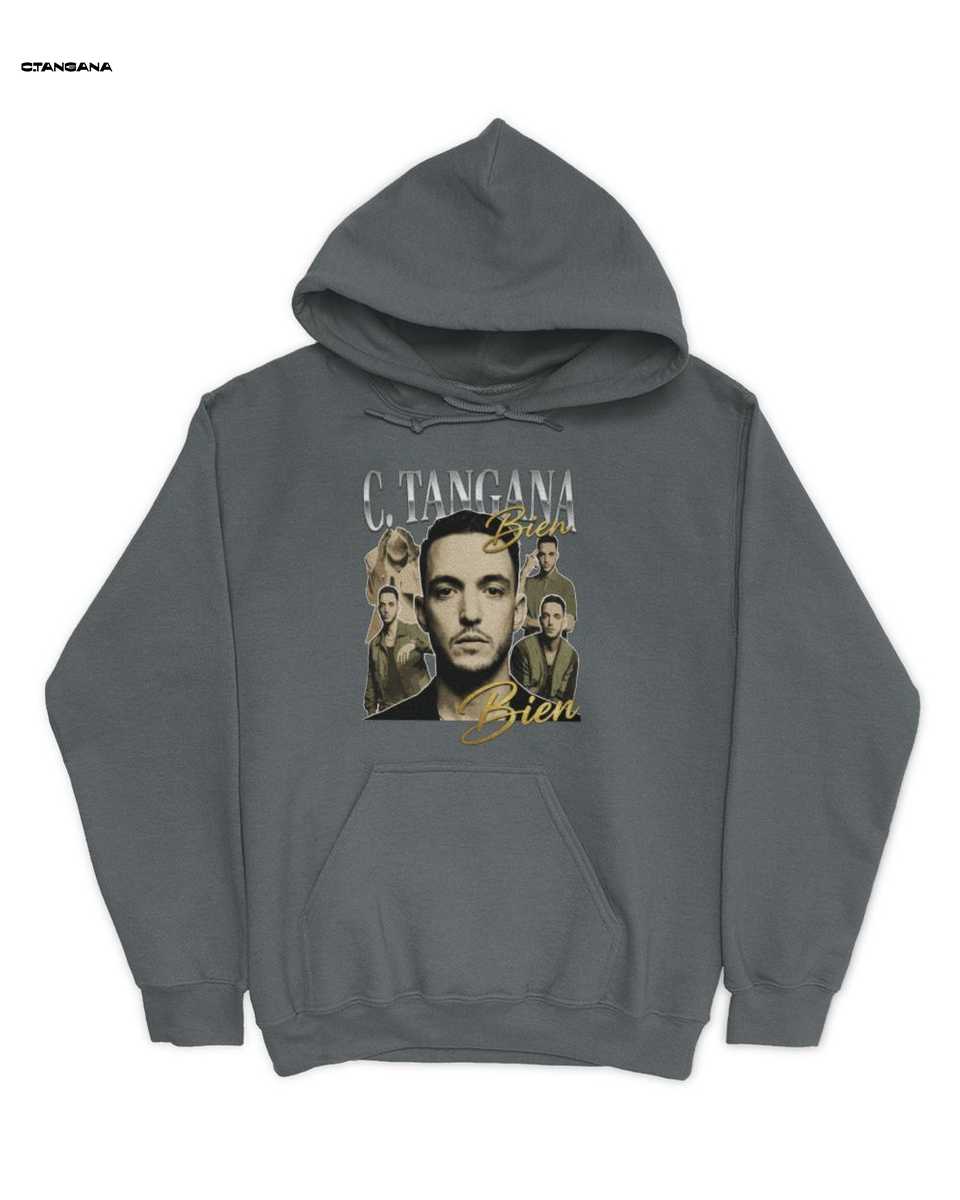 La esencia de esta C. Tangana Merch T-shirt reside en su inconfundible diseño bootleg retro. Inspirada en la estética cruda y auténtica de los años 90, esta camiseta se presenta en un sofisticado color gris oscuro, que sirve como el telón de fondo perfecto para el impactante grafismo. El diseño central presenta una imagen poderosa del artista C. Tangana, rodeada de múltiples poses secundarias que capturan su carisma y evolución. Esta disposición dinámica es característica de las prendas bootleg de la época, que a menudo fusionaban imágenes de conciertos, portadas de álbumes y fotografías promocionales de una manera única y no oficial, creando piezas de prendas con carácter. El nombre ‘C. TANGANA’ y la palabra ‘Bien’, un guiño a su famoso adlib y la energía positiva que evoca, están realzados con una tipografía dorada o amarilla. Estos detalles dorados vintage no solo añaden un toque de lujo y distinción, sino que también evocan la opulencia y el brillo asociado a la cultura hip-hop de los 90. Es un diseño que habla directamente al corazón de los fans del ‘Madrileño’, de aquellos que crecieron con la música urbana merch y la inspiración hip-hop 90s. No es solo una Pucho camiseta, es una pieza que encapsula la esencia de Antón Álvarez moda y su impacto en la cultura española.