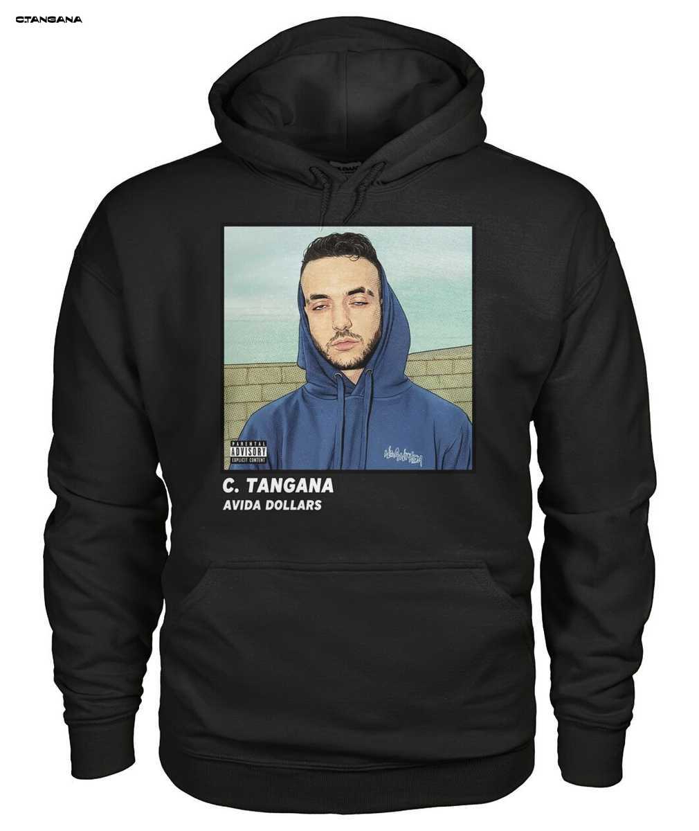 Luce tu pasión por el rap español con esta camiseta exclusiva de C. Tangana. El diseño presenta la icónica portada del álbum AVIDA DOLLARS en un llamativo estilo de ilustración tipo cómic. Sobre una camiseta negra de alta calidad, destaca el retrato artístico de El Madrileño con su sudadera con capucha azul, creando un look urbano y contemporáneo. Ideal para fans de Pucho y seguidores de la música urbana, esta prenda es una pieza esencial de merchandising para cualquier admirador y un verdadero homenaje a uno de los momentos clave de la Música Española moderna.